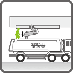 液体アスファルト出荷地でタンクに積むタンク上部から出荷地の設備を使用して積みます。