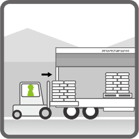 自社倉庫等で、荷物をフォークで積み込みます。